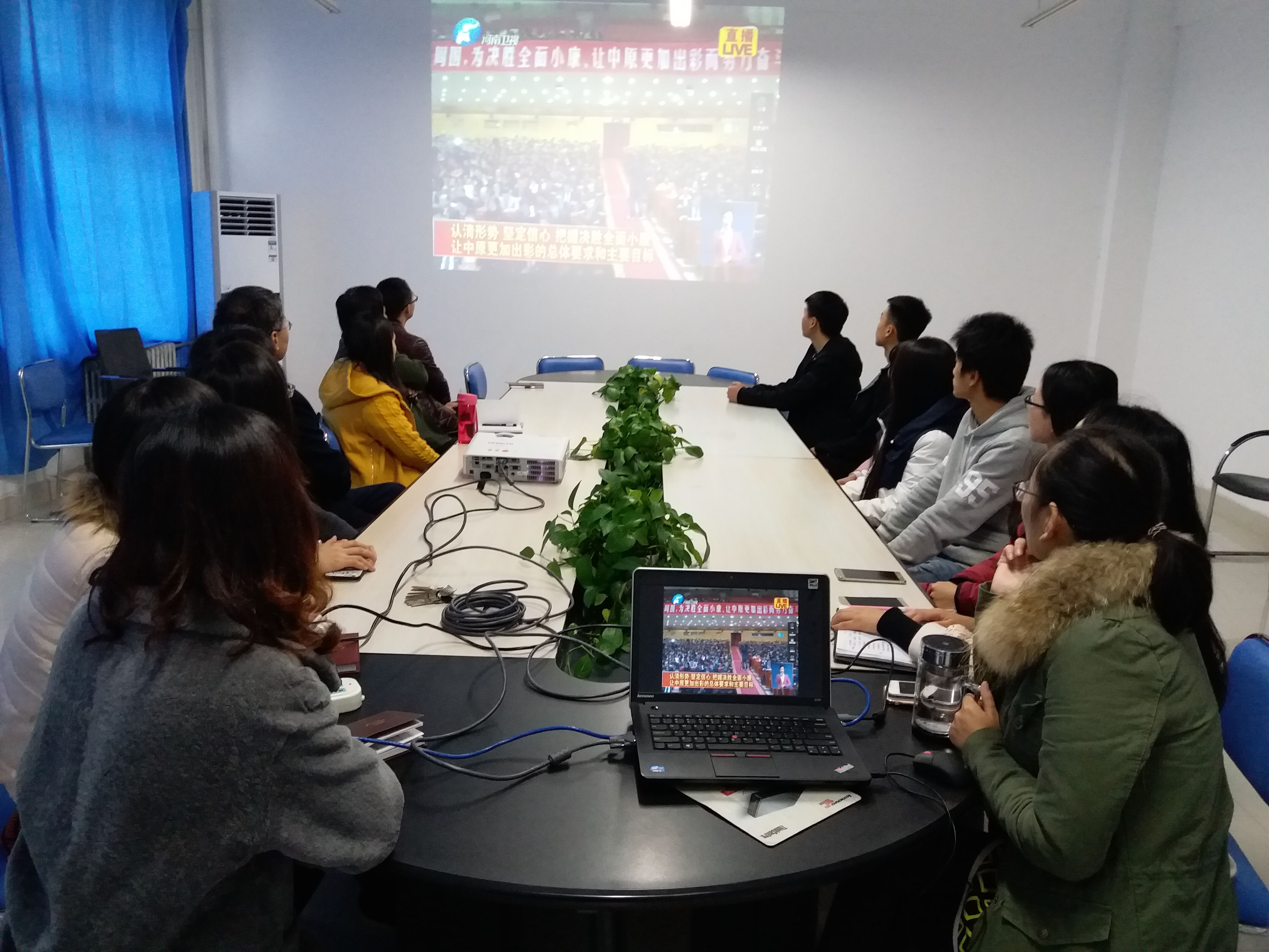 10月31日上午9:00,中国共产党河南省第十次代表大会在郑州隆重开幕。在校党委统一部署下,经济与管理学院组织师生党员在经管楼219观看开幕式盛况。学院党总支书记邢晟、党总支副书记陈章美、全体行政人员和学生党员代表一同观看此次直播。