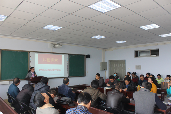 为进一步弘扬高尚师德,传承师德精神,深入推进师德师风建设和精神文明建设,11月3日下午,数学与信息科学学院在东风校区教三楼1000会议室成功举办了以“崇尚师德 教书育人”为主题的“师德讲堂”活动。数学与信息科学学院全体教职工参加了本次活动。此次活动由学院党总支副书记张阳主持。