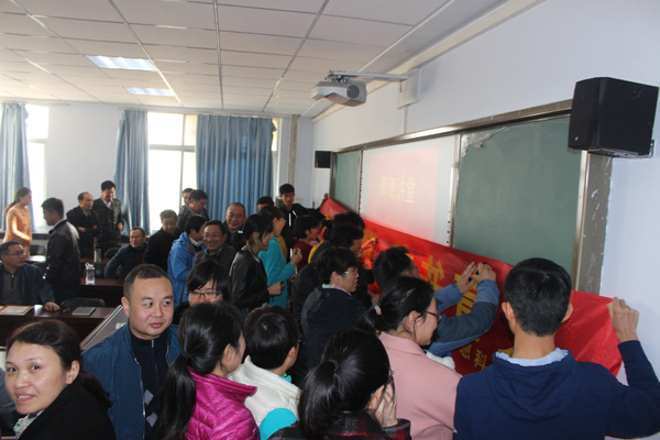 此次活动由“唱一首歌、讲一个故事、看一部短片、谈一番感悟、做一个承诺、承载一份心愿”六个环节组成。活动在唱一首歌中拉开帷幕。“好大一棵树,绿色的祝福,你的胸怀在蓝天,深情藏沃土……”,教师就如一棵树,辛勤地培育着一颗颗幼苗;讲一个故事环节,本次仍然“以身边人讲身边事,身边人讲自己事,身边事教身边人”为主要形式,邀请我院时海亮、段淑娟两位老师,讲述他们自己的故事;看一部短片环节,我们观看了“关爱父母,用心一’孝’”,作为教师,向同学们传递知识是我们的责任,但同时让同学们拥有健康感恩的心与无限的爱也是师德精神的体现;随后,在场教师纷纷发言,讲述自己心中的感受,品悟师德的力量,升华自我的境界;做一个承诺环节,郭书记带领大家宣誓了教师誓词。最后,所有老师在“崇尚师德,教书育人”的横幅上签上自己的名字,写下自己的承诺。“师德”是教师之魂,简单的两个字,份量却很重,或许我们穷尽一生也写不完。做一个好老师难,做一辈子好老师更难,唯有用真爱去书写,才会写出师德的光芒。