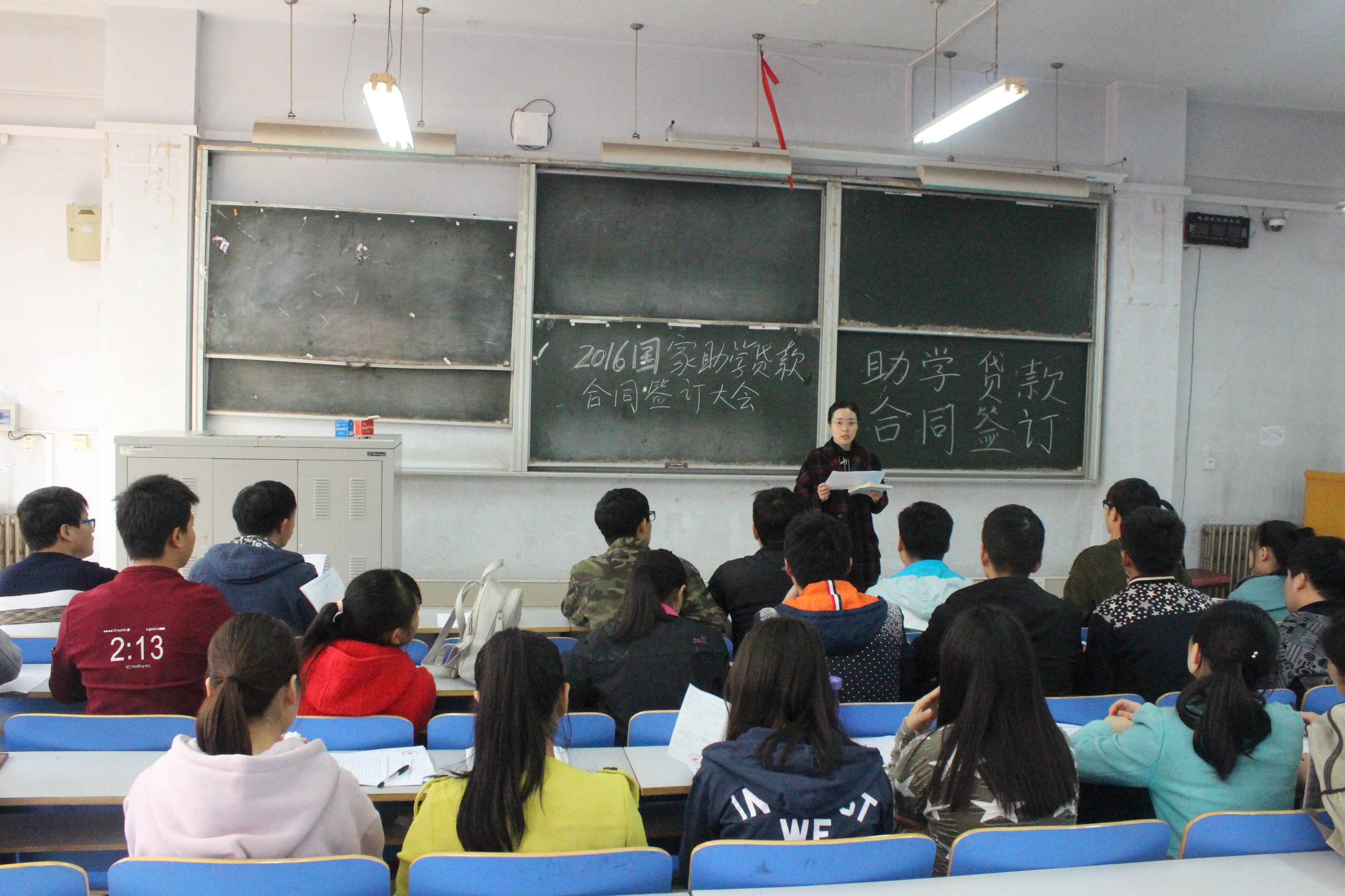 11月4日中午,数学与信息科学学院在东一楼218召开国家助学贷款学生诚信教育大会暨合同签订仪式。