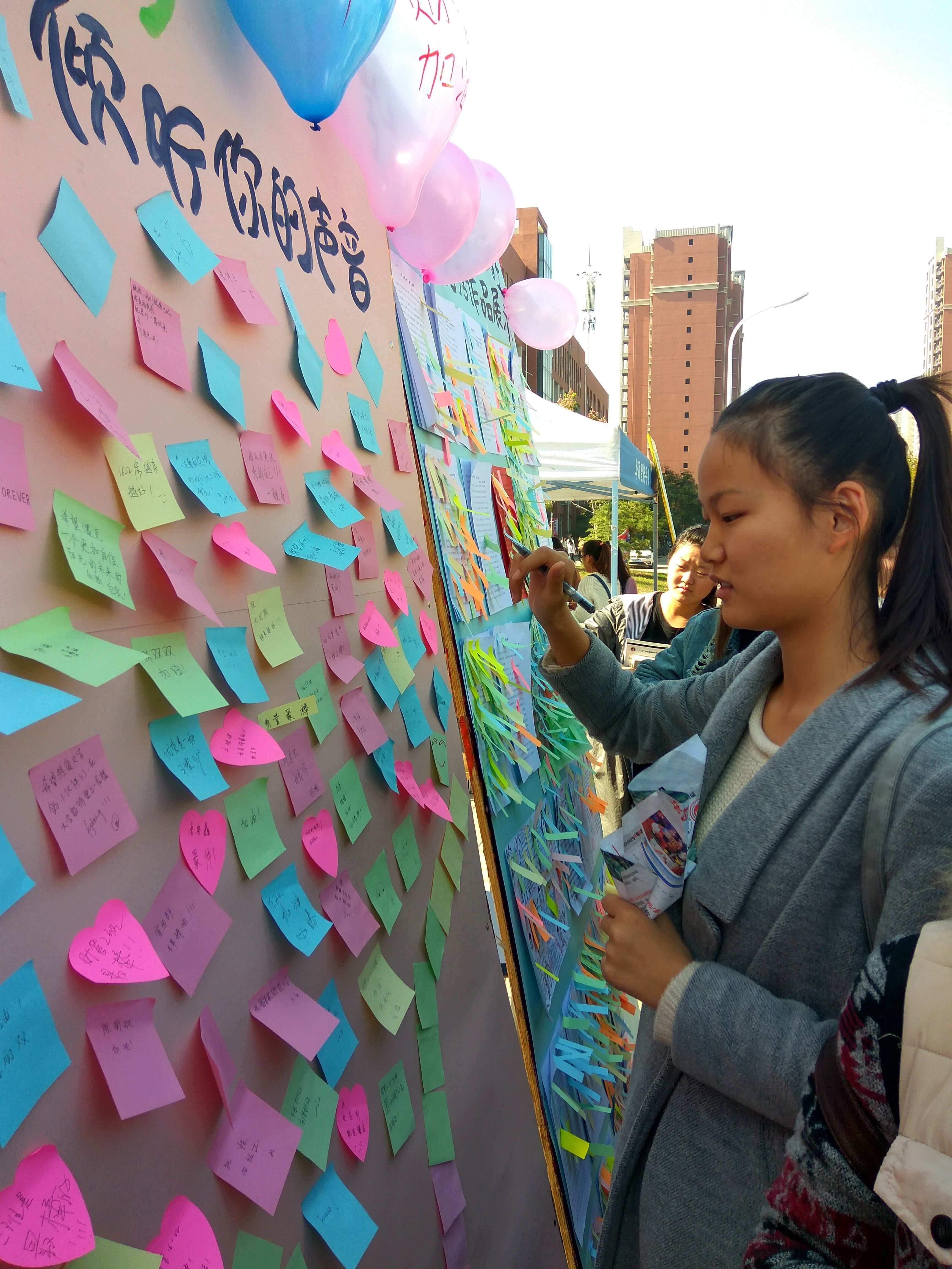 本次活动自10月底开始筹办,经过前期的征稿、初评以及到最后的展出,历经两周的时间,得到了我院同学的广泛支持和积极参与。11月10日上午,工作人员们搭建好展示帐篷,将入围的26份优秀作品进行展出,由同学们投票最终选出20份作为获奖作品。另置一主题为“树洞,倾听你的声音”的宣传板,用于写寄语。活动现场,同学们热情满满,纷纷投票并写下寄语,另有小礼品赠送,以感谢他们的积极参与。最终,在综合文章内容与投票结果后,财务管理1601班的陈娇巧同学所写的《墨笔生香,人生也可更具芳馨》获得本次大赛的一等奖。