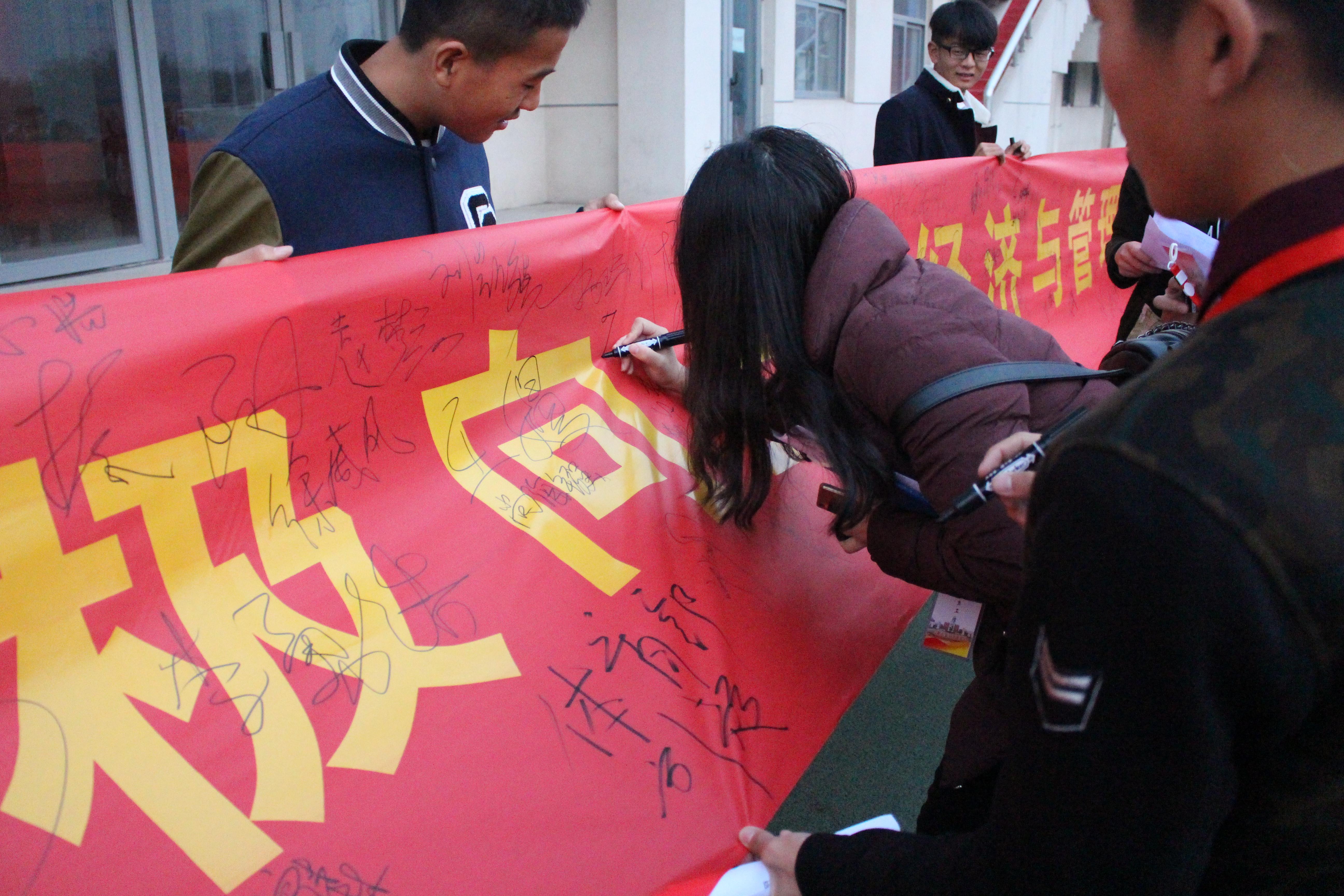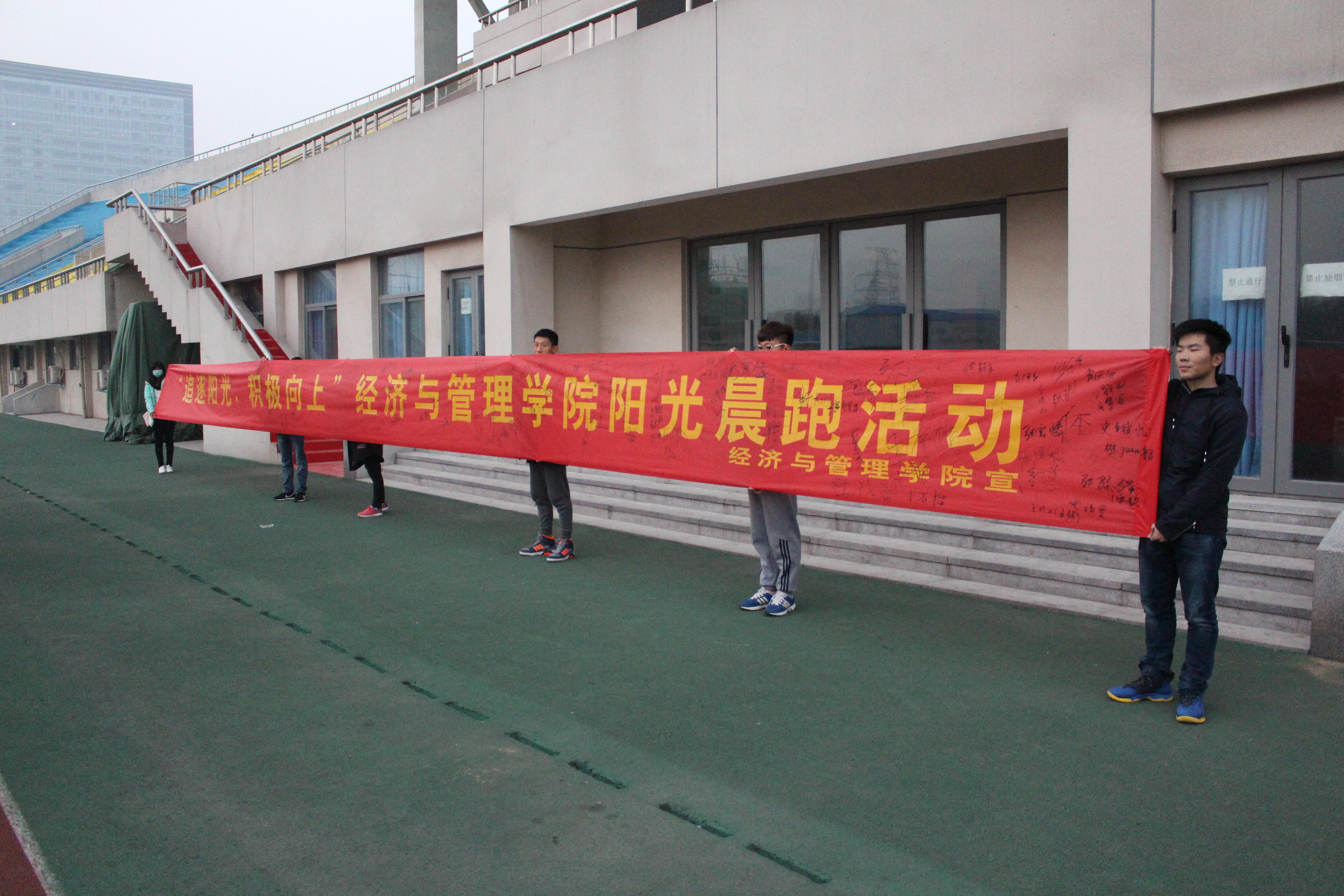 为进一步加强我院学风建设,改善学生迟到、旷课的现象,帮助学生克服懒惰心理,养成良好的作息习惯,2016年11月16日早晨7:00,经济与管理学院在科学校区足球场举行 “追逐阳光 积极向上”阳光晨跑签名活动。