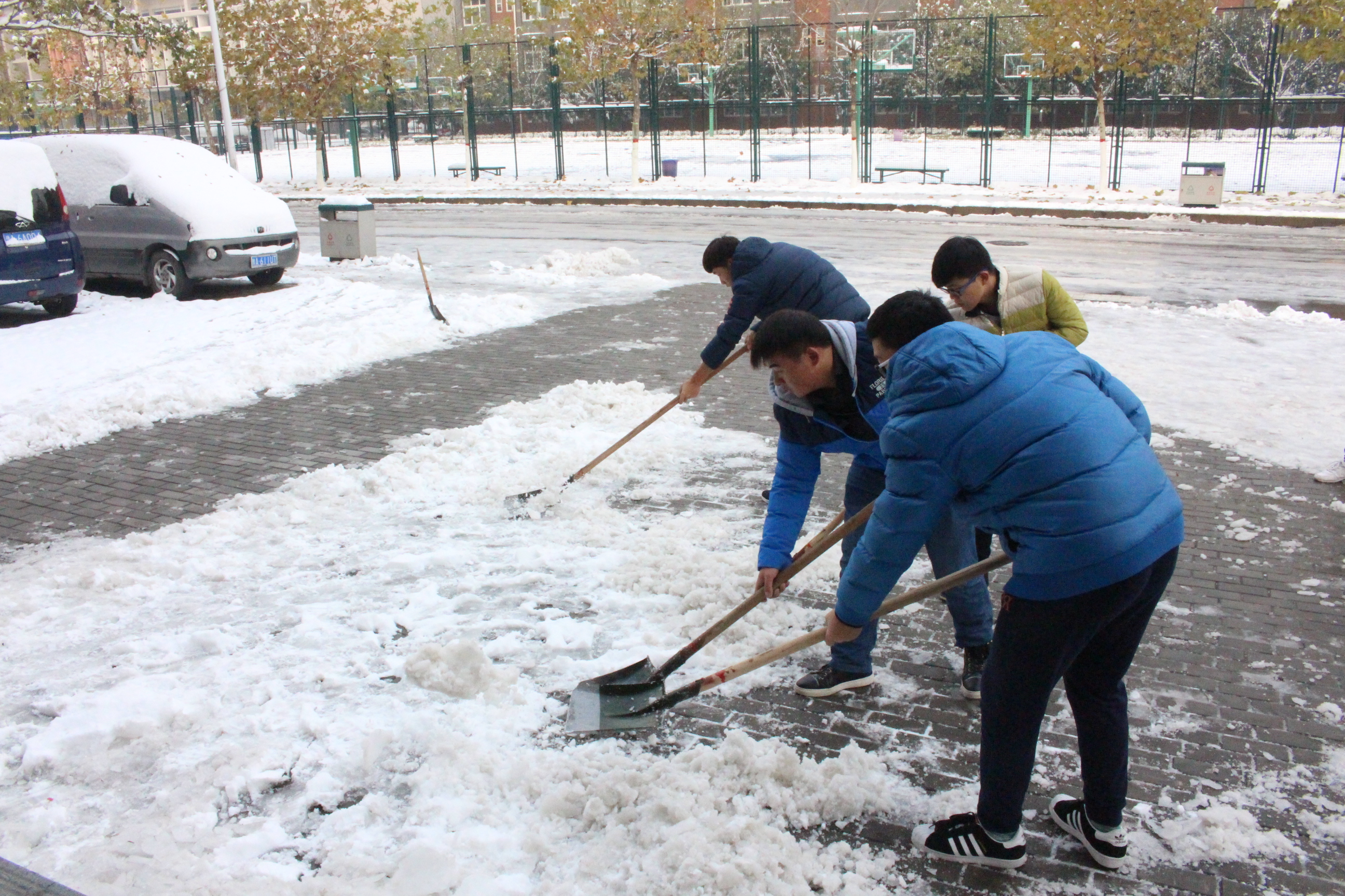 2016年的第一场雪来的正巧,“小雪”节气刚到,雪花就洋洋洒洒降临整个校园,将轻院装点得银装素裹,白雪皑皑却又美不胜收!而与此同时经过一天大雪的飘洒厚厚的积雪却也给师生的出行带来了诸多不便,11月23日一大早,经济与管理学院组织部分学生干部和研究生开展义务扫雪工作,清除地面积雪。
