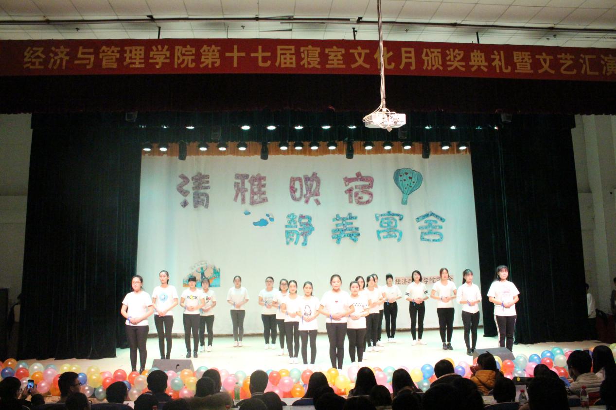 为了营造良好的宿舍文明风尚,促进宿舍精神健康,12月7日晚7:00,经济与管理学院第十七届“寝室文化月”颁奖典礼暨文艺汇演在科学校区三教楼208隆重举行。