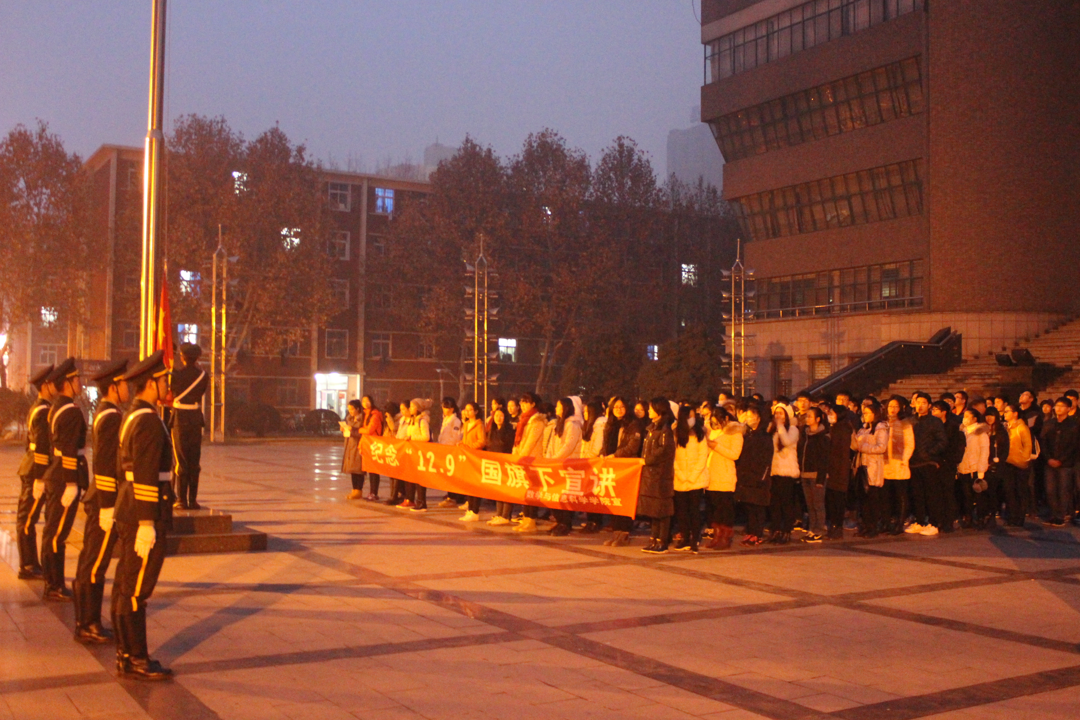 为弘扬一二·九爱国主义精神,数学与信息科学学院于12月12日早上举行了纪念一二·九运动81周年主题升旗仪式,并开展了国旗下宣讲活动。我院14、15和16级全体学生参加了此次升旗仪式。