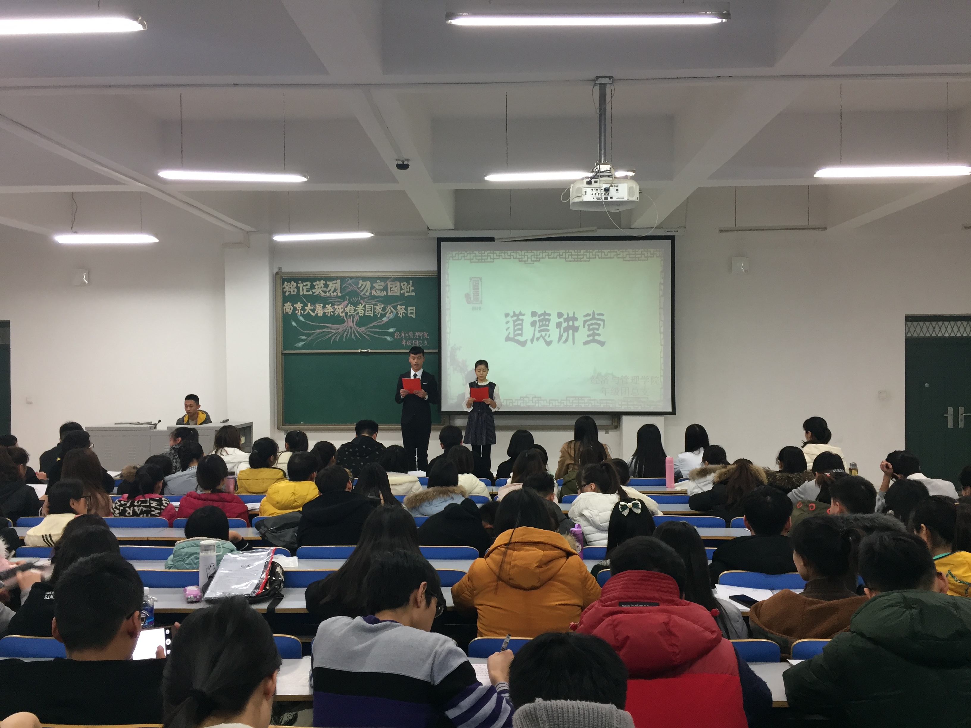 为激发当代大学生的爱国热情,引导当代青年树立报国之志,悼念在南京大屠杀中死难的同胞和为祖国牺牲的革命英烈,2016年12月13日晚19点,经济与管理学院在科学校区经管楼309举办了“铭记英烈,勿忘国耻”道德讲堂活动,第56期入党积极分子和年级团总支全体成员参加了此次活动。