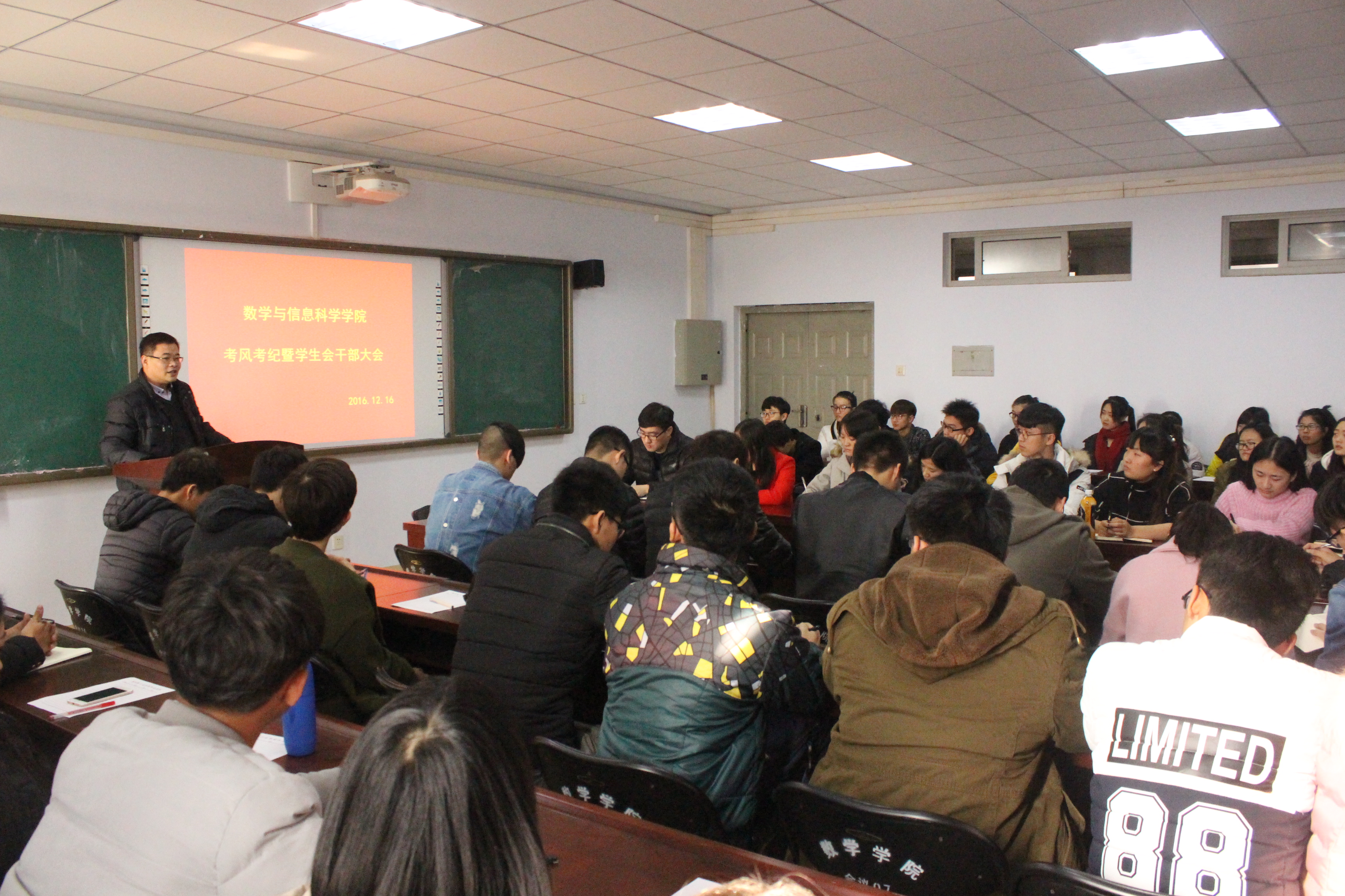 为了加强考风考纪教育,强化学生干部模范带头作用,12月16日中午,数学与信息科学学院在教三楼1000会议室举办考风考纪暨学生干部大会,党总支副书记张阳老师、学生会全体成员及各班级主要学生干部参加了此次会议。