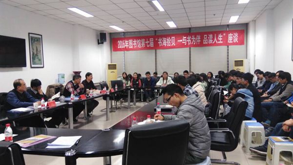 第七届“书海拾贝-与书为伴品读人生”师生读书座谈会于20161216日下午,在图书馆第三会议室召开。郑州轻工业学院图书馆馆长袁道强教授、机电工程学院副院长、机电工程研究所所长教授陈鹿民博士、经济与管理学院校聘二级教授张省博士,图书馆相关老师及50多名学生代表参加了读书交流会,郑州轻工业学院副校长博士生导师方少明教授委托袁道强馆长宣读了发言稿。档案馆馆长兼图书馆副馆长管洲主持了此次座谈会。