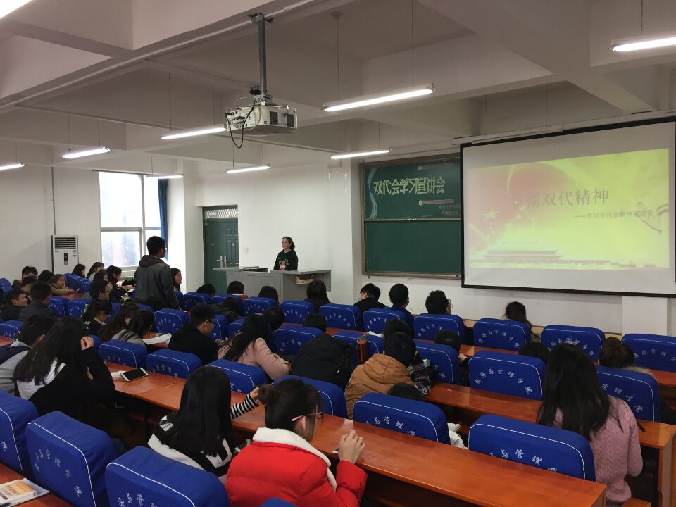 为深入学习、贯彻领会全国高校思想政治工作会议精神及校团(学)代会精神,12月16日中午,经济与管理学院分团委在经管楼211组织我院广大团学干部召开全国高校思想政治教育暨校团(学)代会精神学习交流会,我院200余名各年级各班的团干部、团员青年代表参与了学习交流,会议由党总支副书记陈章美、分团委书记姚少华老师主持。