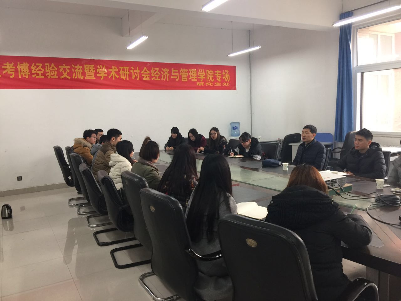 2016年12月29日上午,经济与管理学院及研究生处共同举办的考博经验交流会在经管院308举行。本次会谈邀请我校的新晋硕导张省博士和宋勇超博士参加。两位博士为2016级MPAcc和工商管理的同学讲授了精彩的考博经验。