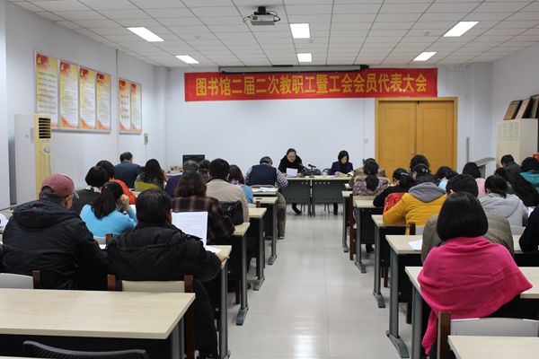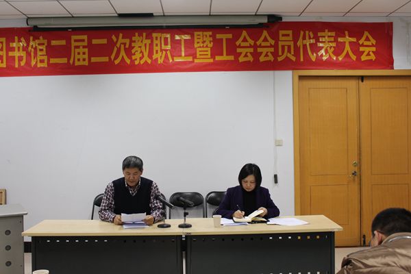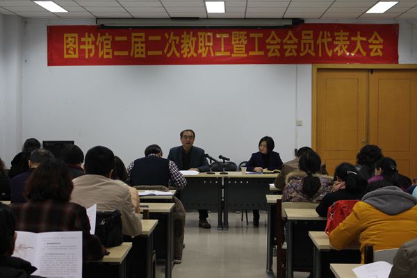 201715日下午,图书馆分工会在图书馆六楼视频报告厅召开了“图书馆二届二次教职工暨工会会员代表大会”,全体代表出席了会议。大会由直属党支部书记蔡丽萍同志主持。