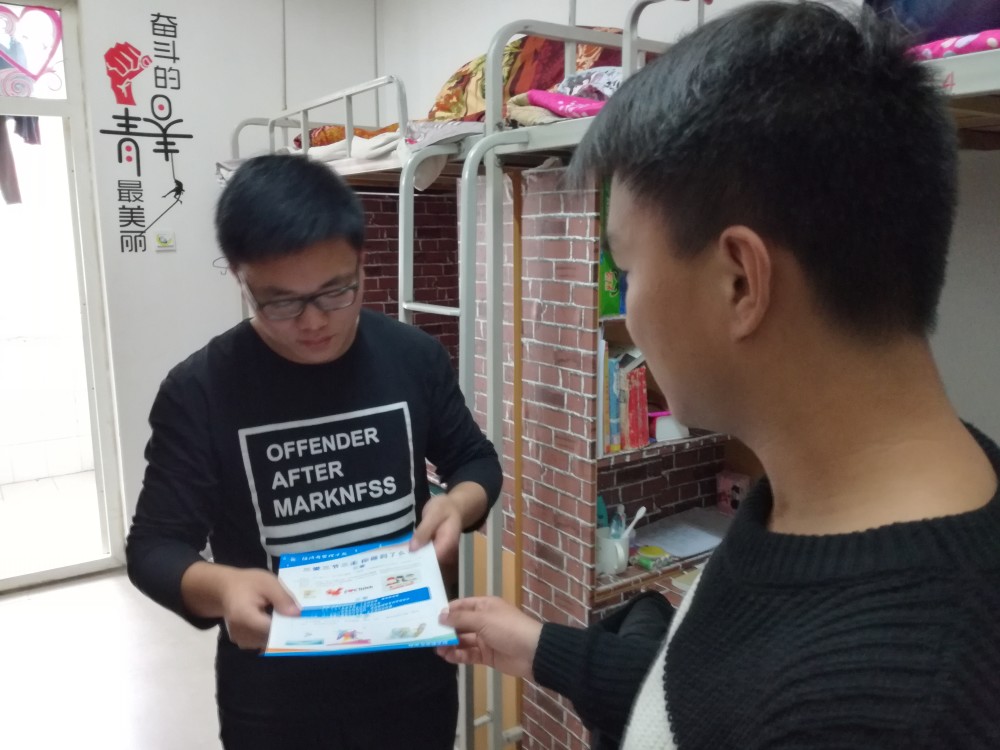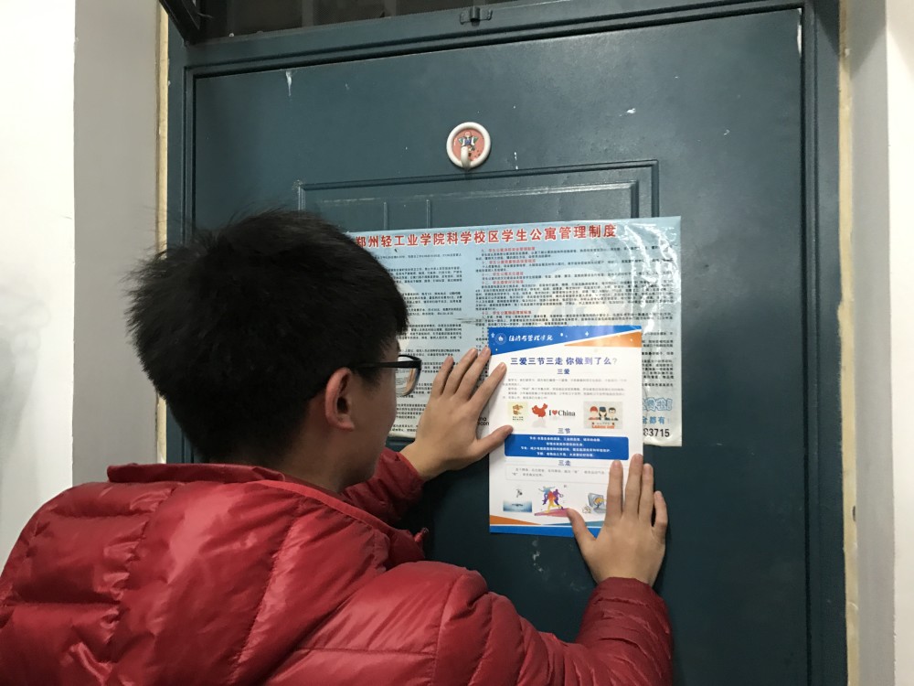 本次活动组织学生干部进入宿舍弘扬雷锋精神,向同学们介绍“三爱三节三走”的内容及含义,并分发相关的宣传彩页,让同学们对雷锋精神有更深刻的理解,让同学们了解“三爱三节三走”的内容。在与宣传人员的亲切交流中,同学们对锻炼身体、节约资源与爱国主义等思想表现出了热烈的响应和充分的支持。大家纷纷表示会把“三爱三节三走”落实到以后的学习生活中去,树立对自己祖国的高度责任感,自觉肩负起勤俭节约,反对浪费的社会责任,带动更多同学培养起热爱校园,热爱生活的情感。