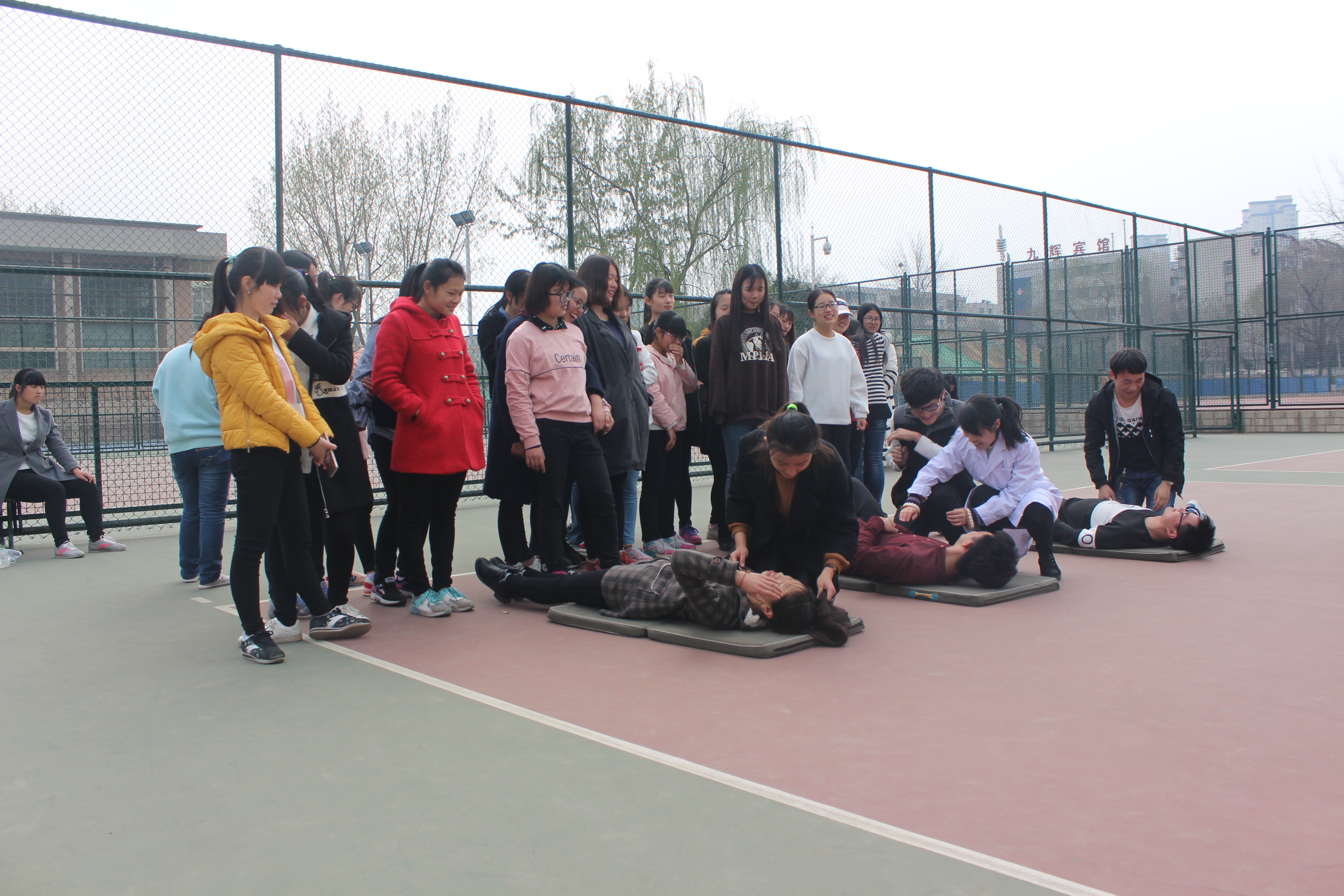3月17日中午,全体16级学生在排球场开展了校园安全急救知识的讲解与演练。特别邀请了学院学医科专业的王颖老师来给大家指导。首先,她介绍了在校园生活中容易遇到的突发紧急情况,并详细向大家讲解了在遇到火灾、意外受伤等应该采取的紧急处理措施。接下来,又教大家心肺复苏、扭伤等的处理技巧。并耐心给大家纠正动作,分析其中应该注意的各种问题。最后,班里的男同学教女同学一些防狼格斗术,在面对危险的时候一定要沉着面对,冷静处理。