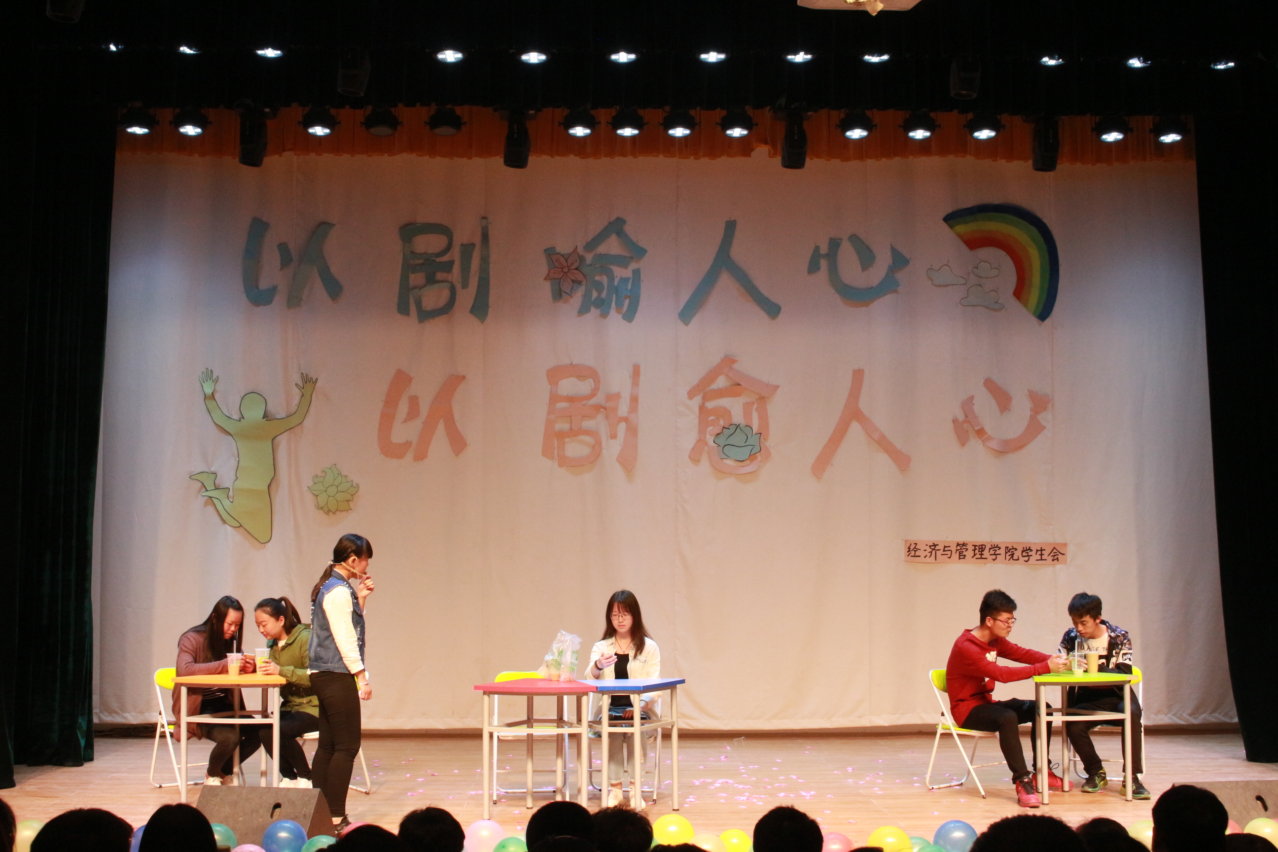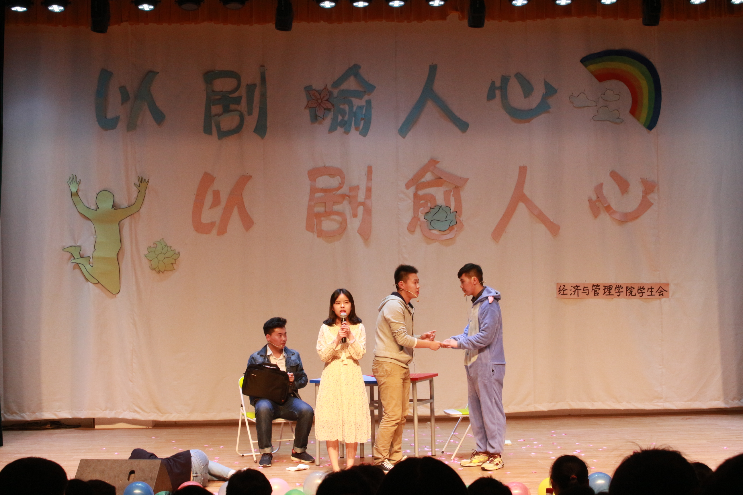 为丰富校园文化生活,普及心理健康知识,提高我院大学生心理健康水平,经济与管理学院于2017年4月13日晚6:30在科学校区三教楼208成功举办第七届心理情景剧大赛。党总支副书记陈章美,全体专职辅导员,部分兼职辅导员出席比赛现场。