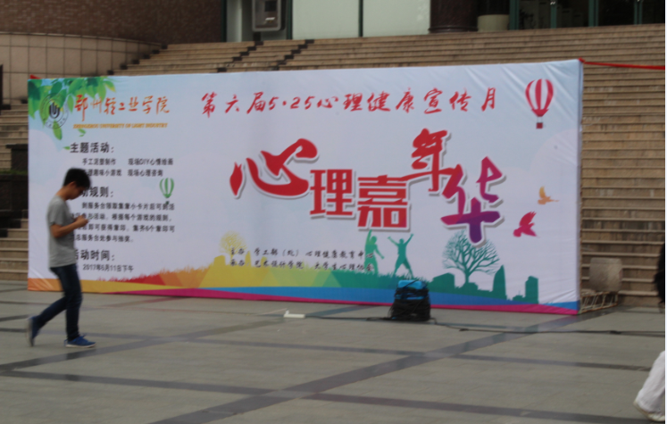 5月11日下午,我校分别在东风校区图书馆广场和科学校区体育场看台一楼举办了别开生面的心理嘉年华活动。此活动为第六届“5・25”心理健康宣传月系列活动之一。校党委副书记马英来到现场,与参加活动的同学亲切交谈,并饶有兴趣地体验了快乐芯情绪放松活动,同时指出心理健康教育工作要以全体学生为主体,要以发展性教育为主导,要采取新形式,设计新活动,解决新问题,促进学生身心健康发展。本次活动由学工部(处)、心理健康教育中心主办,艺术设计学院、计算机与通信工程学院和大学生心理协会承办。