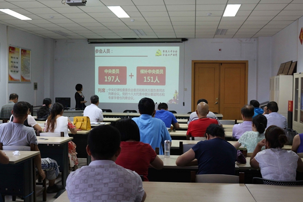 会上,书记蔡丽萍同志以“学习十八届六中全会精神——做合格共产党员”为全体党员同志讲授了一堂生动的党课。书记在课程中从会议概述、十二大关键词解读六中全会公报、全会的决定与确认事件、立足岗位贯彻六中全会精神四个方面解读了六中全会精神。她用人民出版社出版《党员必须牢记的100条党规党纪——解读》充分论证了从我们基层党组织到党员干部到每位党员如何立足岗位贯彻六中全会精神。她表示,今年对于国家和学校都是一个特殊的年份,国家是一个政治大年,下半年召开党的十九大,学校是发展突破的关键一年,我们应把学校和师生的利益放在首位,围绕中心,服务大局。她要求党员同志们,要把个人发展和学校的发展结合起来,在更大的格局中找准自己的定位,在服务师生中实现个人价值。