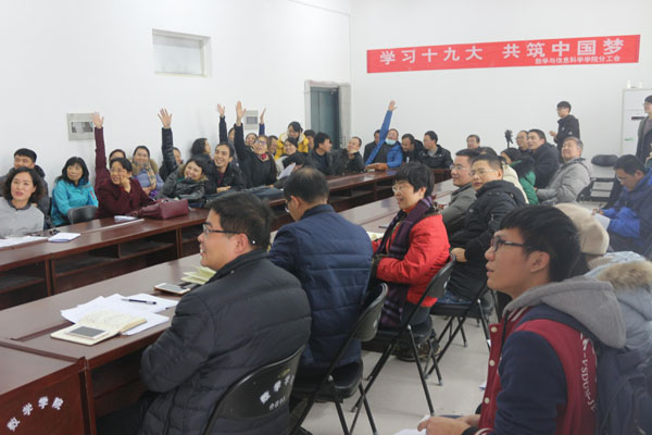 学习宣传贯彻党的十九大精神是当前和今后一段时期的首要政治任务,为确保十九大精神学习理解系统深入、稳步推进、常态长效,数学与信息科学学院通过专家报告、党课等形式开展系列教育活动,以期增强广大教职工的政治意识、大局意识、核心意识、看齐意识,引导教职工以饱满的热情与精神状态踊跃投身到学校及学院的建设发展中来。