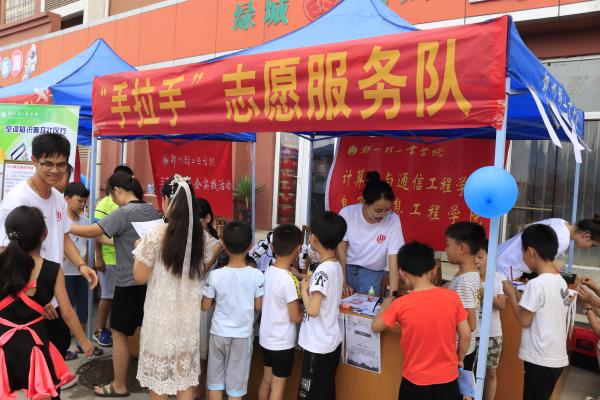 为响应“三下乡”活动的号召,深入贯彻落实教育扶贫工作相关精神与要求,弘扬中华民族传统美德,体现当代大学生的热心、爱心以及对弱势群体的关心。7月14日,计算机与通信工程学院(电子信息工程学院)“大手拉小手,科普助成长”志愿服务团队在荥阳市聂楼社区开展了暑期社会实践活动。