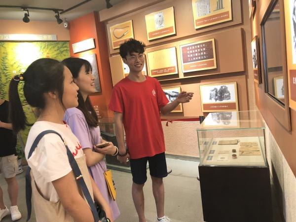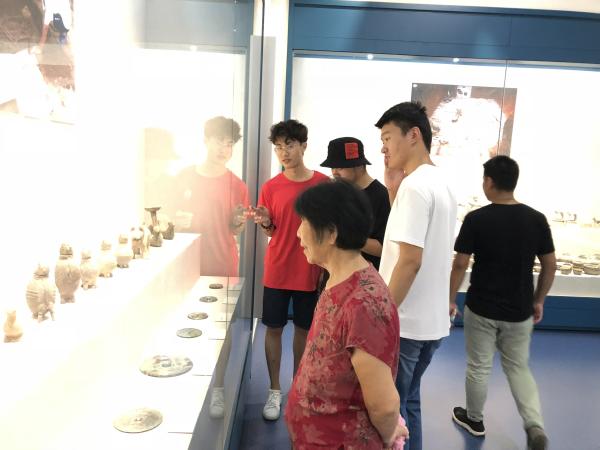 7月18日,队员们前往郑州市博物馆进行了参观学习,观赏了郑州地区馆藏数量众多的夏代古城遗址珍贵的文物展出的铜戈、铜镞宫殿建筑柱础石、陶板瓦、陶水管、窖藏坑出土青铜器等实物标本,这些展品集中展现商族的起源、王权的确立、商都的规制以及凝重瑰丽的王室重器。在参观过程中,队员们运用自己的所见所学为前来参观的游客们进行了细致的讲解,不但增加了游客们对馆藏文物的深层认识,还增强了个人对所学知识的运用熟练程度。