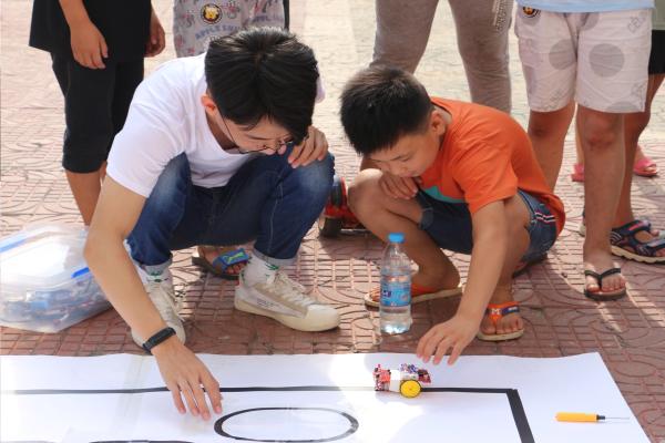 7月17日,“筑梦科技,共享未来”科普教育关爱服务团抵达新乡市原阳县官厂乡黄寺村。在村干部的带领下,团队成员对活动场地进行了简单的布置,并将提前准备好的3D打印、机械手臂、无人机等科技产品摆放出来。刚摆放好产品,孩子们就表现出了极大的兴趣,纷纷凑上前来观看,成员们热情地向孩子们一一介绍,并讲解了相关制作原理。该活动让孩子们感受到了科技的魅力,有效地激发了孩子们对科学知识的渴望。次日,为了让孩子们进一步接触科技、感受科技,团队成员手把手地带着孩子们一起将电子元件连接到电路板上。在互动环节中,成员们与孩子们一起跳舞、画画、做游戏,通过与孩子们密切的沟通和交流,成员们从细节处引导其树立正确的价值观和人生目标。临别时,当地驻村第一书记和村主任对成员们开展此次科普教育关爱活动表示衷心的感谢,孩子们也逐一向队员们告别并送上了自己的祝福。