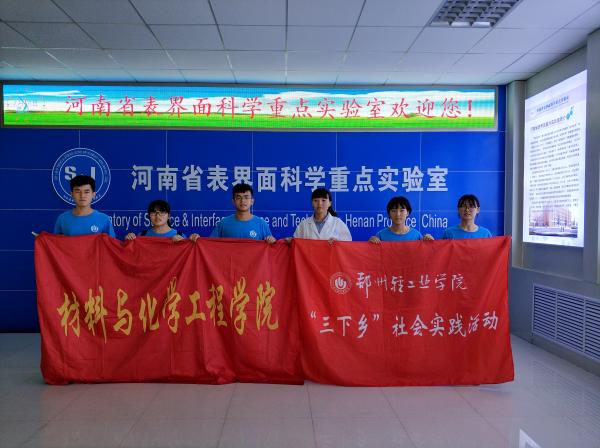 为提高大学生的实践能力使知识传授、能力培养和素质拓展融为一体培养大学生树立正确的人生观、价值观和世界观,明确今后的奋斗目标和奋斗理念,增强大学生的团队协作意识、奉献意识和社会责任意识7月16日,材料与化学工程学院创新实验实践团走进河南省表界面科学重点实验室开展了以“科技创新,勇于实践”为主题的暑期社会实践活动。