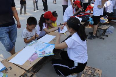 7月19日,团队成员在分团委书记沈高峰老师、学生工作办公室主任司丽娜老师辅导员杜明明老师的带领下来到了海岗村。首先,师生代表同海岗村村支部书记会面座谈,交流学习了相关扶贫政策和注意事项。接着,团队成员通过发放宣传页的方式海岗村村民们普及互联网+、儿童安全教育、大学生扶贫政策等内容。为给村民们提供力所能及的帮助成员们还设立义务维修志愿站,免费为当地村民手机贴膜,以及维修电脑和小型家电等电子产品。最后,成员们在当地小学向孩子们展示机器人等智能产品,并给孩子们发放彩笔与纸张,让孩子们尽情创作,展现自己。随后,队员们还与孩子们进行互动游戏,为孩子们表演节目,给孩子们带去快乐。