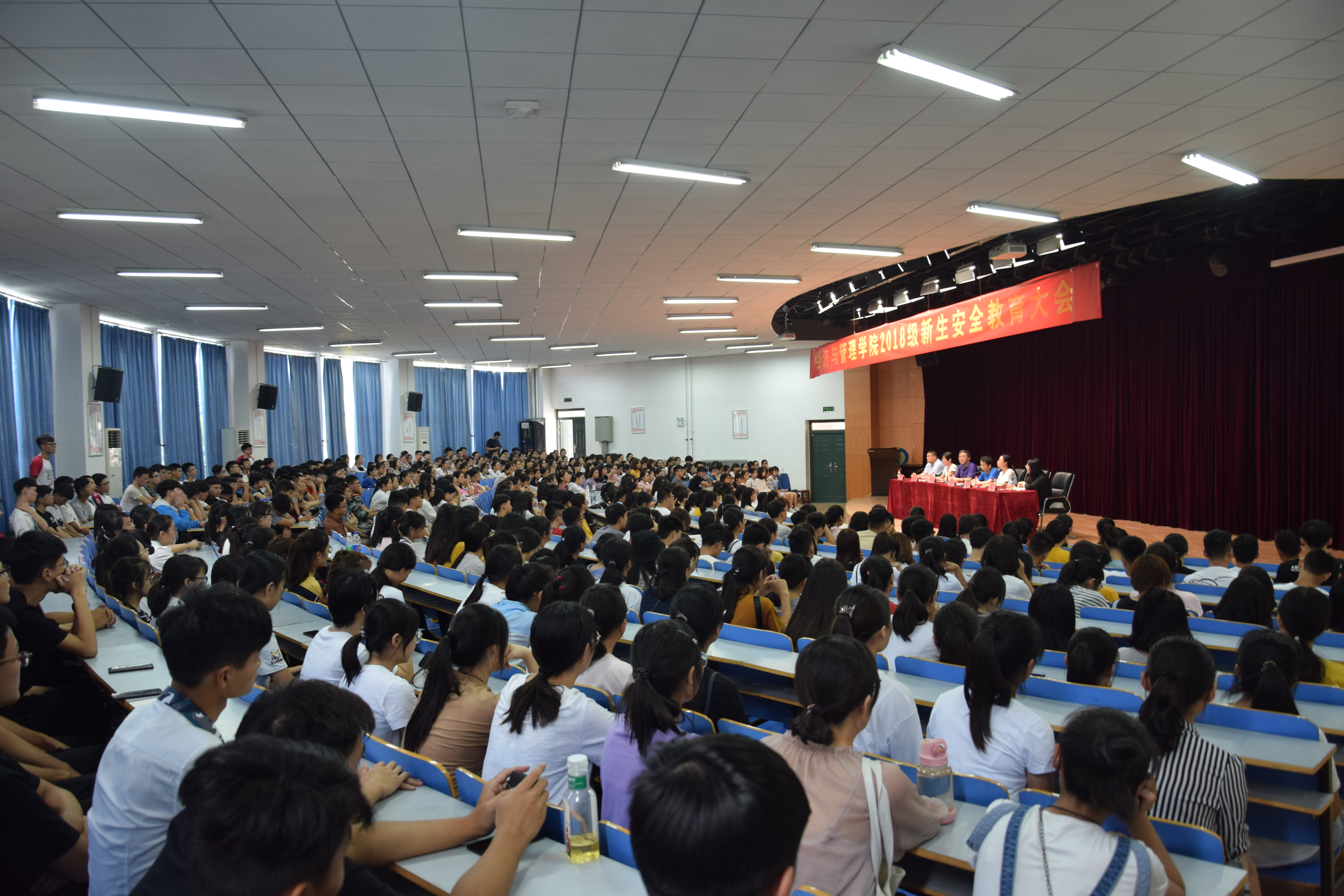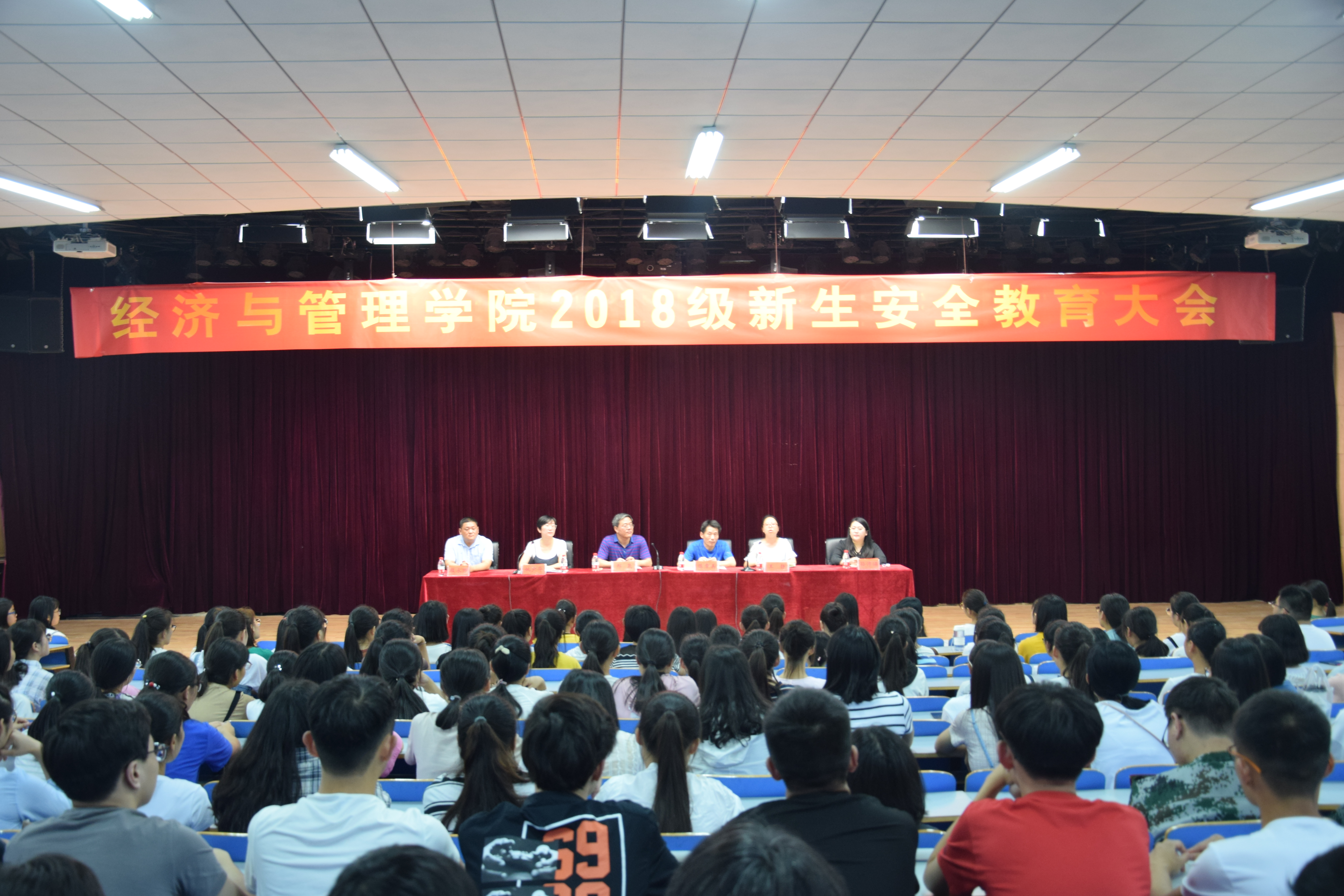 为做好2018级新生入学教育工作,提升2018级新生安全防范意识,9月6号13点半,经济与管理学院在科学校区大学生活动中心208召开了经济与管理学院2018级新生安全教育大会,经济与管理学院党总支书记邢晟老师、党总支副书记陈章美老师、专职辅导员、新生辅导员和全体2018级新生参与会议。大会由分团委书记姚少华老师主持。