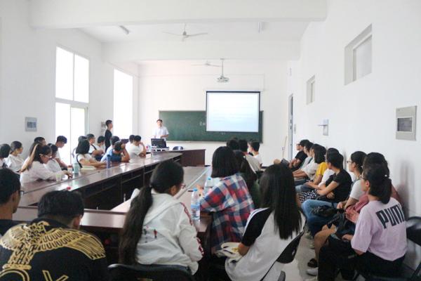 最后,副院长黄士国老师介绍了我院专业课程设置,就掌握学习方法,树立正确的专业思想等方面提出了希望和建议;徐倩老师就学籍管理规定做了详细说明;数学与应用数学专业系主任荣民希老师、信息与计算科学专业系主任许振华老师分别从学科专业、师资队伍、基地建设和科学研究等方面对2018新生进行了详细的讲解,鼓励大家加强对学科专业的认识。