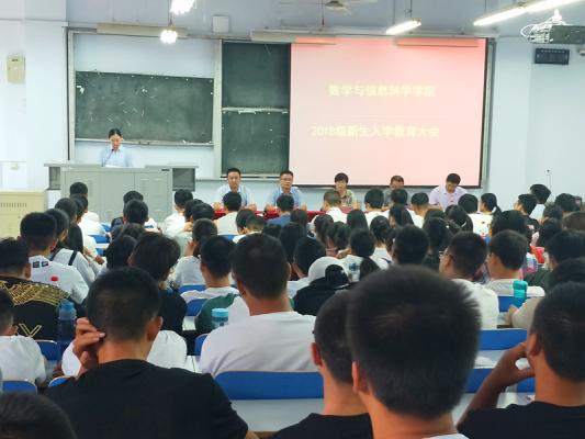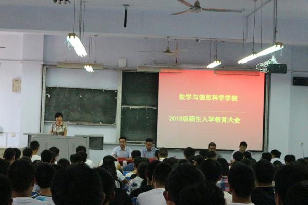 9月10日下午15:00,数学与信息科学学院在东一楼218教室举行2018级本科新生开学典礼暨入学教育大会。数学与信息科学学院党政领导、系主任、教师代表、分团委负责人及各年级辅导员出席了会议。大会由党总支副书记张阳主持。