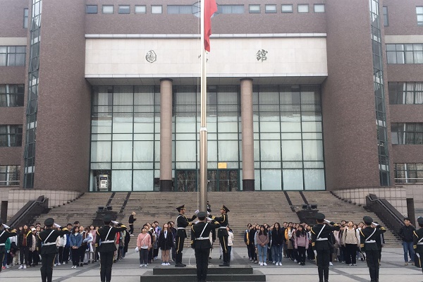 3月25日,外国语学院在东风校区图书馆广场举行“弘扬雷锋精神,践行社会主义核心价值观”升国旗主题教育。