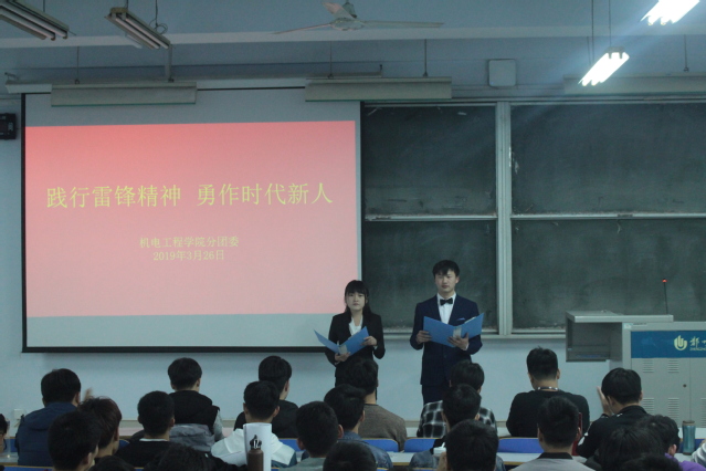 为大力弘扬雷锋精神,引导学生做一名对祖国、对人民有用的人,机电工程学院分团委于326日在东一楼200举办了以“践行雷锋精神,勇作时代新人”为主题的诗歌朗诵活动,161718级近200名学生代表参与了本次活动。