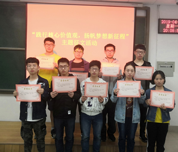 为了积极培育和践行社会主义核心价值观,进一步推进文明校园建设。4月15日,物理与电子工程学院在二教704举行了“践行社会主义核心价值观,扬帆梦想新征程”主题征文表彰仪式。