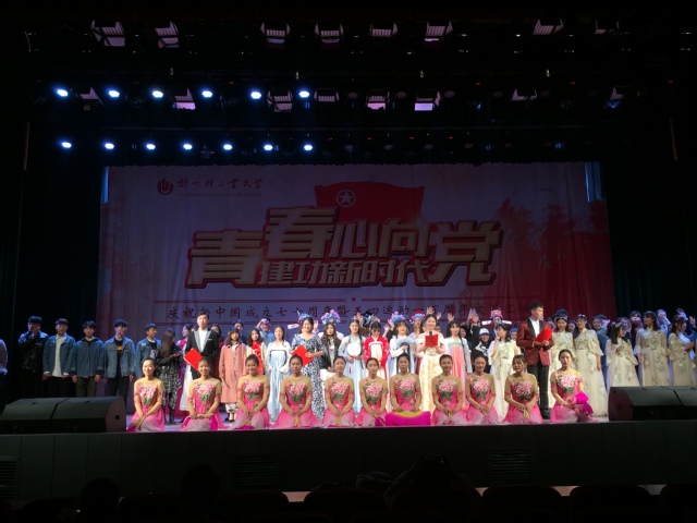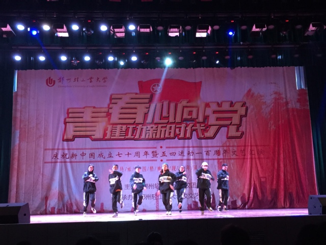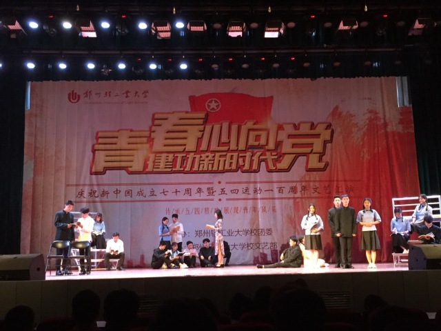 为纪念五四运动一百周年,向新中国成立70周年献礼,弘扬五四精神,展现当代大学生积极向上,砥砺前行的爱国精神风貌,由校团委主办,校学生会文艺部与大学生艺术团承办的“青春心向党,建功新时代”郑州轻工业大学纪念五四运动一百周年文艺汇演于4月28日在东风校区大礼堂成功举办,全校师生及艺术团指导老师一起观看了本场演出。