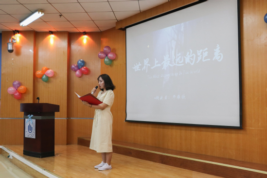 比赛在一段对朗诵作品介绍的精彩VCR短片中拉开了帷幕。比赛中,10位选手结合自己朗诵的题目,以生动的语言将英文融于音乐,将情感化为语言,将文化展于作品,以图文并茂的方式对各经典美文进行了全新诠释;艺术设计学院任双阳同学带来吉他演奏、国际教育学院张含同学带来英文歌曲演唱《lemon tree》、以及大学生艺术团舞蹈团带来的拉丁舞表演,点燃了现场氛围,将比赛推向了高潮。最终,国际教育学院毕雅欣同学获得本次朗读比赛一等奖,陈怡伶等3名同学获得二等奖,窦昌辉等5名同学获得三等奖,陈俊达等7名同学获得优秀奖,各位嘉宾及评委老师为获奖选手进行颁奖并合影留念。