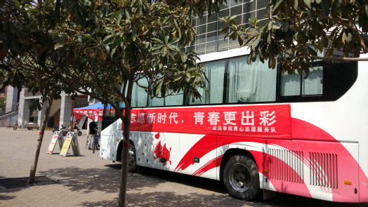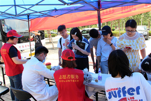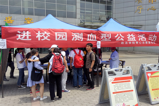 5月30日中午12:30,政法学院联合河南省红十字血液中心在科学校区清苑餐厅广场举办了“志愿新时代,青春更出彩”公益测血型活动。