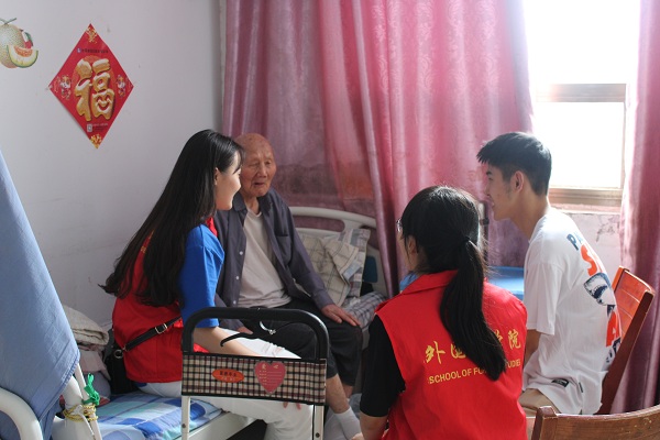 为了弘扬中华传统节日文化,培养学生敬老爱老的传统美德,为老年人的精神世界献上一份关爱,外国语学院组织部分志愿者、学生党员于2019年6月6日下午到郑州市惠济区颐和老年公寓为老人们送去节日的温暖。