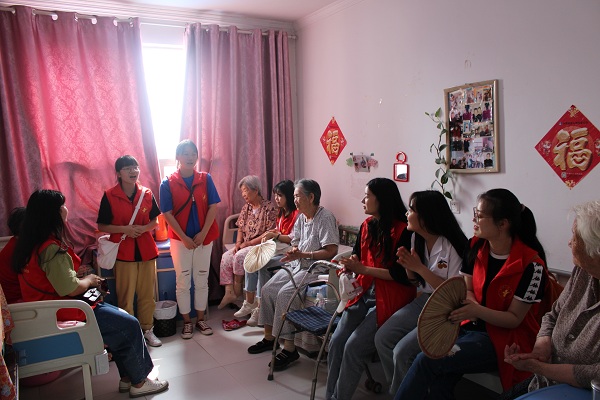 在敬老院里,青年志愿者们向老人们送上了慰问品,并分成几个小组。有的替老人们整理房间、打扫卫生;有的陪老人们聊天、拉拉家常;有的为老人们表演了吟诵,豫剧等节目。一位102岁的老红军与同学们分享了他的抗战故事,“原汁原味”的红色故事感染、激励和鼓舞了现场的同学,让同学们了解了那段用血与火镕铸的历史。