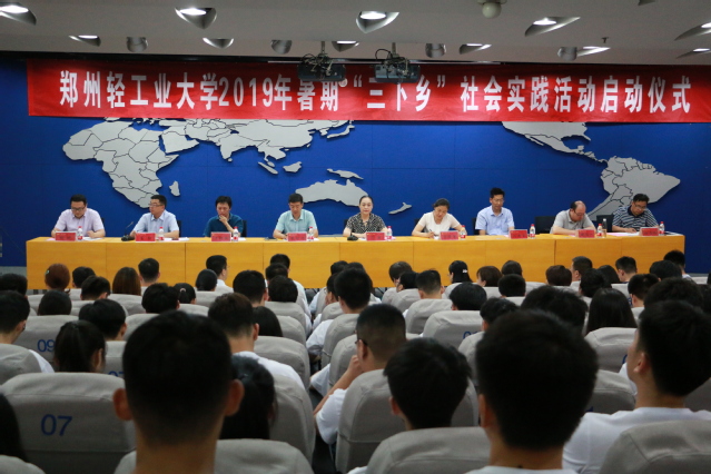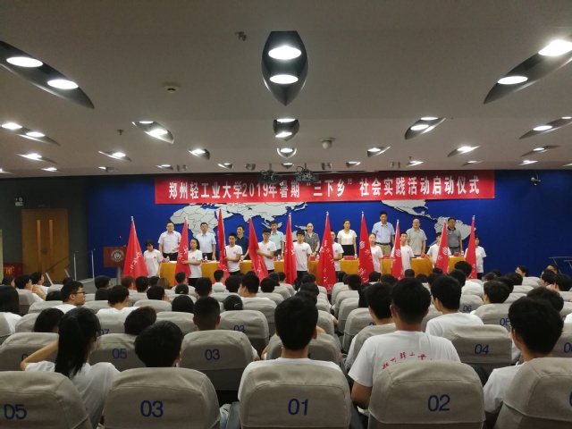 校团委书记葛勋首先宣读了《关于组织开展2019年郑州轻工业大学大学生暑期社会实践活动的通知》,软件学院刘放美老师作为指导教师代表发言,艺术设计学院2016级学生贾慧、政法学院2017级学生鲁亦辰作为学生代表发言。马英副书记和职能部门负责人为我校2019年大学生暑期社会实践重点团队和专项团队授旗。