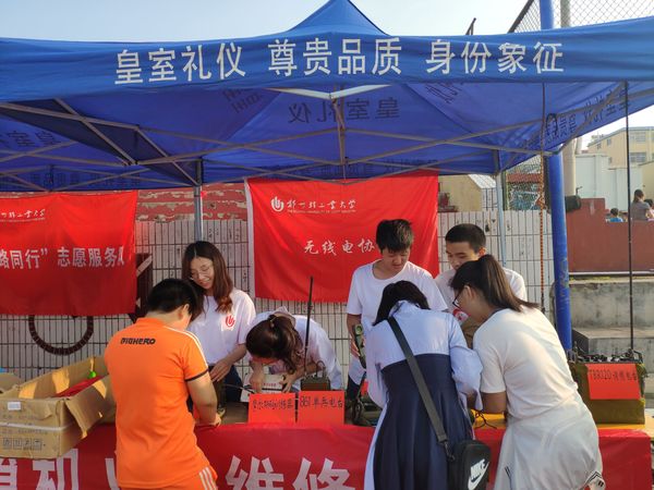 计算机与通信工程学院的手机电脑义务维修小分队师生一行在泌阳县中心体育场开展以“服务社会,e路同行”为主题的义务维修志愿实践活动。队员们进行了手机、电脑等常见问题及网络信息安全知识的宣讲,先后发放200余张宣传页,免费为居民贴手机膜,完成了数台因无法开机、系统损坏等故障电脑的维修工作。队员们通过此次义务维修活动提高了动手能力,以实际行动践行志愿者无私奉献的精神,展现了当代大学生的青春风采。