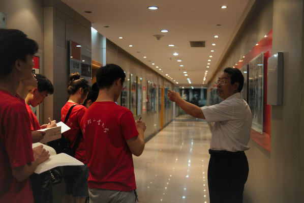 穿梭时光长廊,初识报史文化。队员们走入报史馆,一条“红色长廊”时光轴映入眼帘,以图片和文字资料的形式向人们展现了河南日报的发展历程。长廊左侧展示了河南日报报业集团以十报两刊三网站为主体,初步形成了涵盖纸质媒体、网络媒体、移动媒体、户外媒体的现代传媒体系;长廊右侧记录了新中国成立以来国家领导人对河南日报的多次视察工作。红色走廊是对河南日报报业集团自成立以来,与国家同呼吸、共命运的记录。通过这些,队员们对河南日报的发展历程有了更全面、更直观的认识。