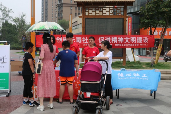 为切实响应党的号召,助力文明乡风塑造专项活动,帮助人们了解艾滋病的相关知识,同时强化群众的防毒意识。7月10日-17日,政法学院“禁毒防艾”小分队联合郑州高新区倾心社会工作服务中心,在郑州市禁毒办和郑州高新技术产业开发区禁毒委员会办公室的支持下,前往郑州市高新区多个社区开展了为期七天的社会实践活动。