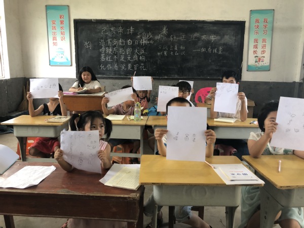 发扬传统文化,激发文化意识。在教学活动中,队员们带领孩子们学习古诗词。为激发孩子们对诗词的学习兴趣,深入理解每首诗词,队员们为孩子们讲解了每首诗词的创作背景、每句诗词的含义以及作者所表达的思想。为活跃课堂氛围,队员们为孩子们讲解了每位诗人的趣闻轶事,孩子们的学习热情愈发高涨起来。