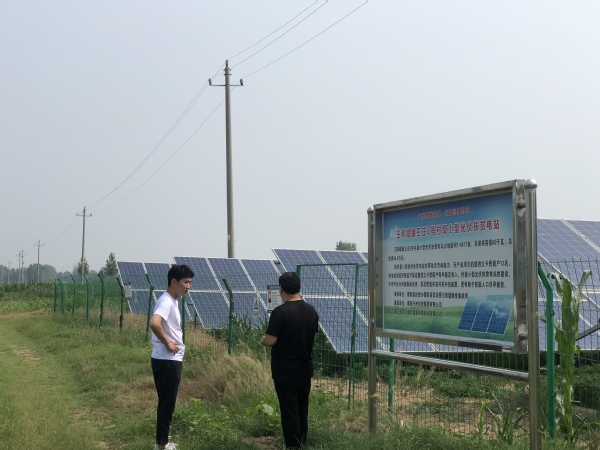 在濮阳县王称堌镇北王楼村驻村调查时,扶贫小组的冯主任带领队员们参观了山药种植扶贫项目,放眼望去,一排排尚未成熟的山药有序的坐落于田间,虽然目前山药种植尚未取得成果,但待后期生产线销售线完备后,预计将会为每户贫困户带来1800元的直接经济效益。随后,队员们来到村里的一座光伏扶贫电站,据了解,这些电站不仅为北王楼村提供了电力资源,而且每座发电站每年可以为15户贫困户分红3000元。