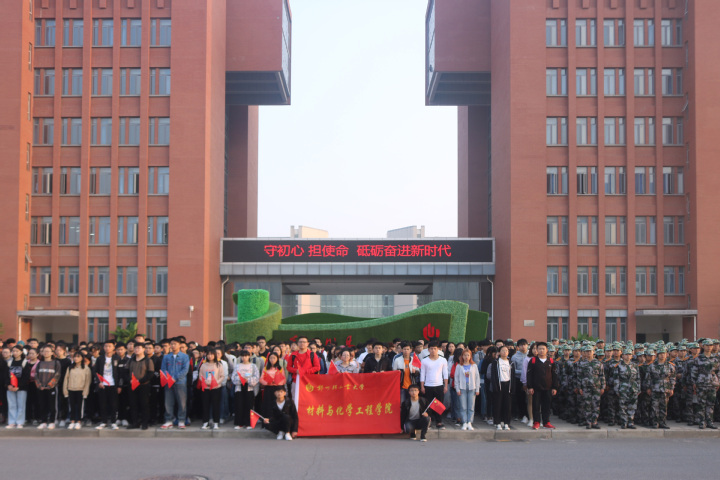 为庆祝祖国七十华诞,弘扬爱国主义精神,9月23日,材料与化学工程学院于科学校区主教楼前广场举行“庆七十华诞,谱青春之歌”主题升旗仪式,我院2017级、2018级、2019级全体同学及全体学生党员参加了此次活动。