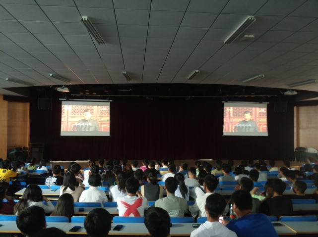 我校师生在东风校区图书馆报告厅观看大会直播