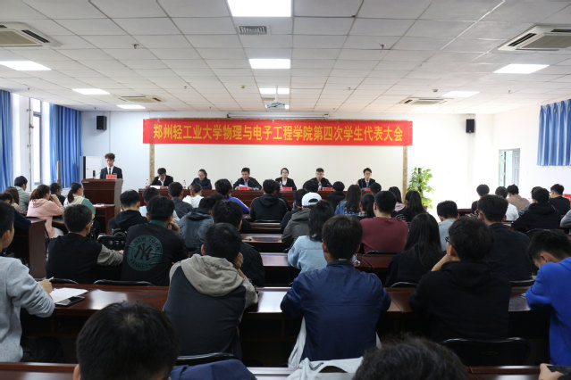 10月29日中午,郑州轻工业大学物理与电子工程学院第四次学生代表大会在四教楼503会议室召开,学院党总支书记闫福丰、党总支副书记李玲、分团委副书记周芳华、学工办副主任王伟夙、校学生会副主席陈阳及学生代表参加了会议。