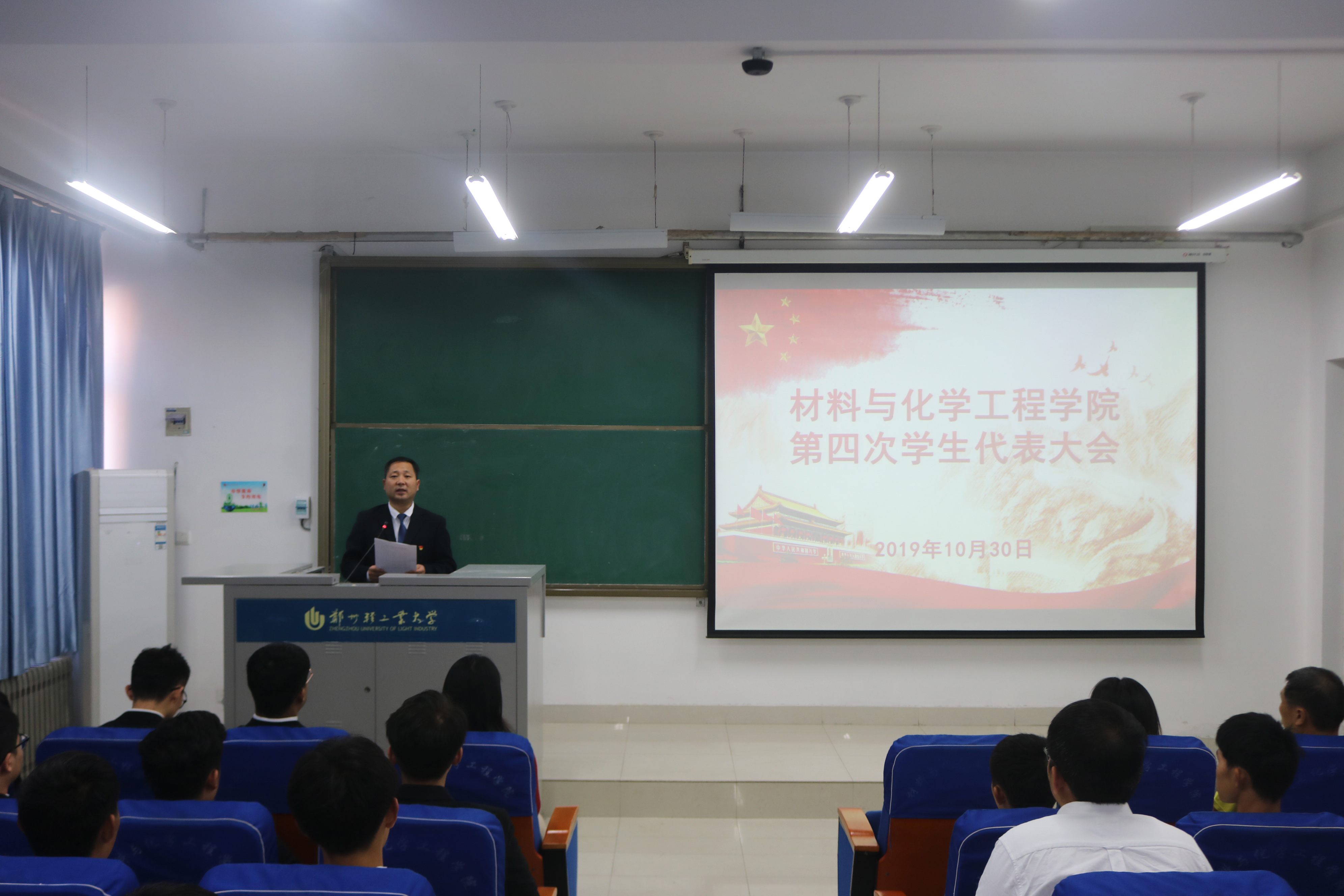 10月30日中午,郑州轻工业大学材料与化学工程学院第四次学生代表大会在化工楼218室隆重召开,学院党总支副书记宋德涛、分团委副书记赵梦婕、学工办主任郭智荣、各年级辅导员、校学生会副秘书长周宗博及全体学生代表共计120余人参加大会。