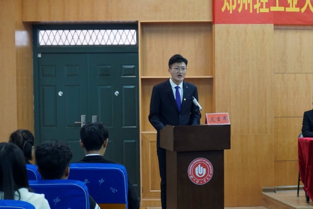 校学生会副秘书长周宗博致贺词。他代表校学生会向大会的召开表示衷心的祝贺,对我院学生会开展的一系列卓有成效的工作表示了充分肯定。希望建筑环境工程学院学生会团结带领广大同学肩负使命、勇于担当,紧密围绕学校育人中心工作,为我校建设高水平轻工业大学贡献青春、智慧和力量。
