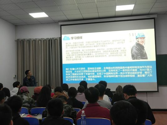 活动开始,精细化工1802团支书做开场致辞:一个国家的发展离不开榜样,榜样引领着青年一代成长,身为当代大学生应该对榜样致以崇高的敬意。接着主持人以ppt的形式向同学们介绍了雷锋、南仁东榜样的事迹,生动地诠释了什么是“榜样的力量”,并为同学们树立起前进道路上的标杆,激励着同学们奋勇前进。最后,同学们积极地分享了自己对榜样的见解,他们纷纷表示今后要从榜样身上汲取力量,不忘初心,牢记使命,争取成为一名无愧于国家,无愧于社会的新时代青年。