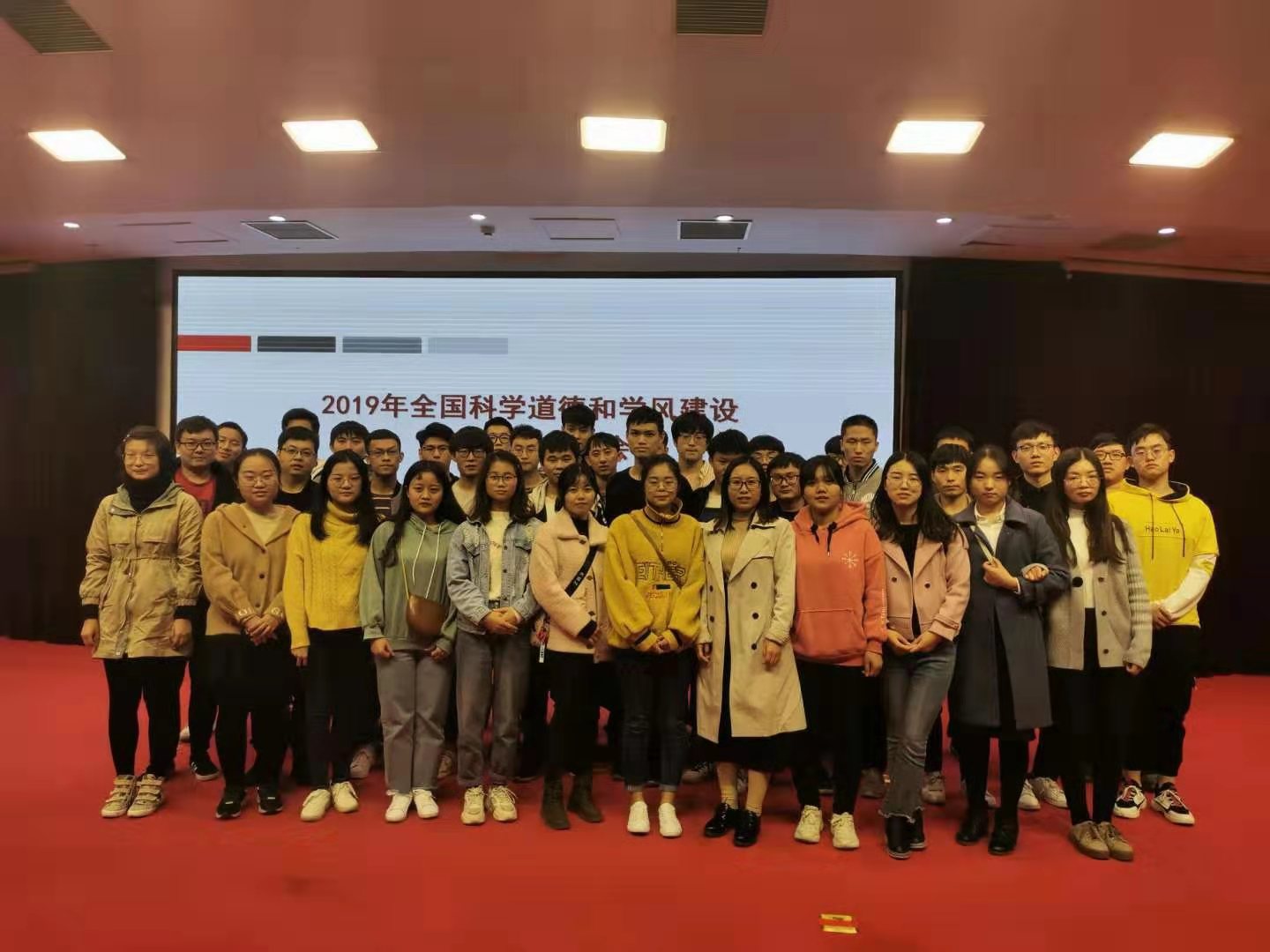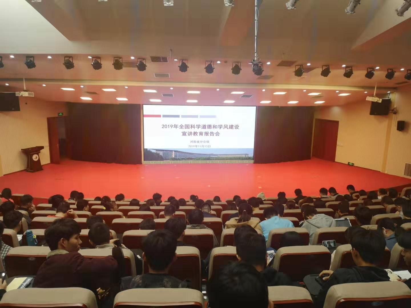 为学习贯彻习近平新时代中国特色社会主义思想,深入推进科学道德和学风建设宣讲教育工作,落实《关于进一步弘扬科学家精神加强作风和学风建设的意见》,引导师生遵守学术规范,坚守学术诚信,11月13日下午,2019年全国科学道德和学风建设宣讲教育报告会在人民大会堂召开。科技处、校科协协同组织我校师生代表在报告会河南省分会场——河南中医药大学图书馆报告厅观看报告会直播。